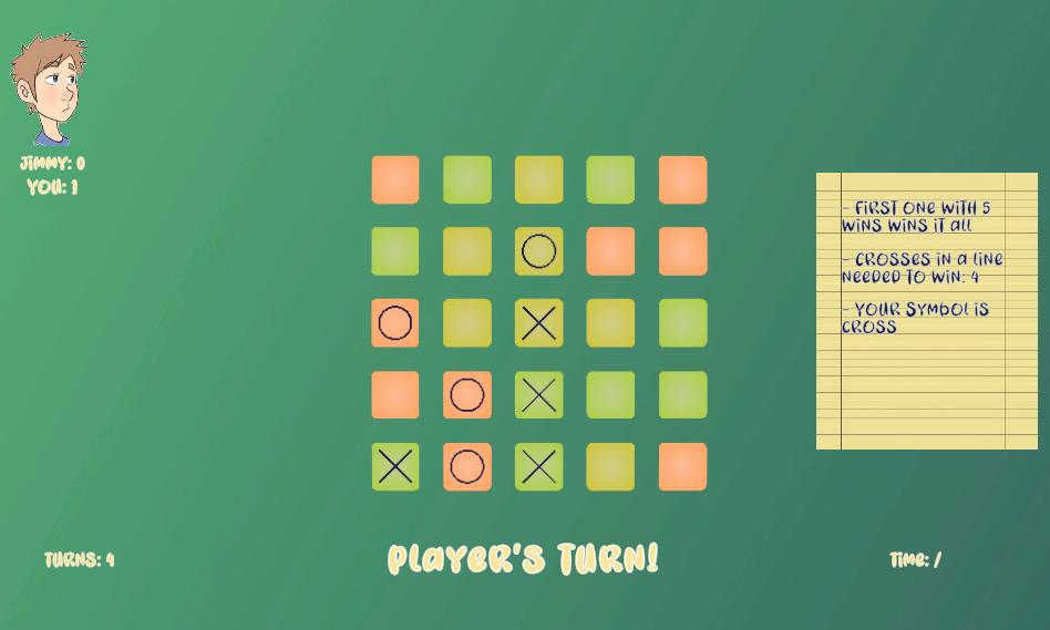 Today you are visiting your little cousin named Jimmy. He invites you for a game of tic tac toe and you agree. While you two are playing the game you start to realise that jimmy isn't the best in following the rules of a game.